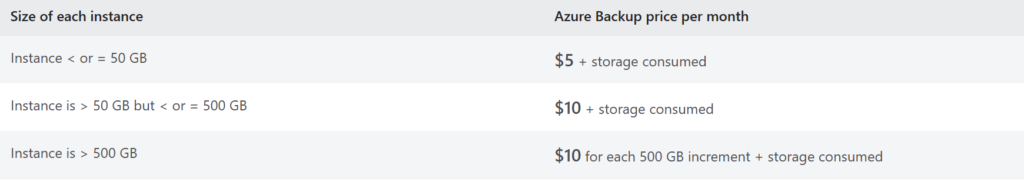 Tiered licensing jumps. Azure Backup’s per-VM fee is based on the size of the VM’s data, broken into tiers in 500 GB increments. The problem is that even a slight overage pushes you into the next tier entirely. So a 505 GB VM costs significantly more than one at 499 GB. Over time, as disks grow naturally from OS patches, application data, and log accumulation, VMs quietly cross tier boundaries without anyone noticing until the bill arrives.