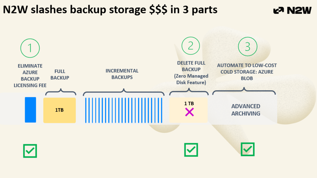 N2W addresses Azure backup costs in three distinct ways, each targeting one of the problems described above.